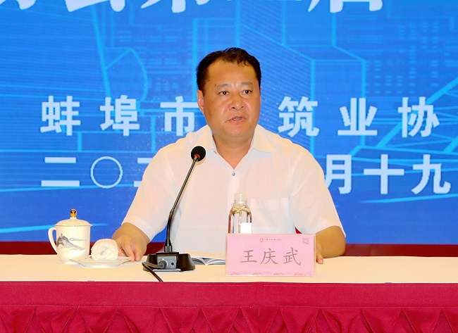 2020年8月19日9时,蚌埠市建筑业协会第三届一次全体会员大会在安徽水利和顺大酒店隆重召开。蚌埠市人民政府副市长王庆武,副秘书长徐行忠到会指导并讲话,市住建局党委委员、副局长徐文伯、市民政局民间组织管理局副局长马立场、市建管处主任唐士全、安徽省建筑业协会秘书长马丽女士、市政工程协会副秘书长江军、市住建局、建管处、三县六区建设主管部门负责人及339家会员单位出席了会议。会议还收到了来自省内合肥市、滁州市、阜阳市、安庆市、黄山市、淮北市等兄弟协会发来的贺信贺电。