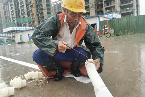 对于因强降雨导致项目部分地区已出现的积水,项目部立即组织人员在不同房号、洞口分别用10余台潜水泵进行抽水,做到“随下随排”,避免因积水问题影响项目进度。