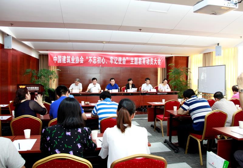 中国建筑业协会“不忘初心、牢记使命”主题教育动员大会于6月25日在京召开。会议学习传达了习近平总书记在“不忘初心、牢记使命”主题教育工作会议上的重要讲话精神,同时传达了部长王蒙徽在住房和城乡建设部“不忘初心、牢记使命”主题教育动员大会上的讲话精神,部署开展协会主题教育各项工作。会长王铁宏作动员部署。副会长兼秘书长刘锦章主持会议,副会长吴慧娟、党总支书记兼副秘书长赵峰传达两个重要讲话精神。中国建筑业协会全体党员、秘书处各部门负责人、各分支机构负责人近60人参加会议。