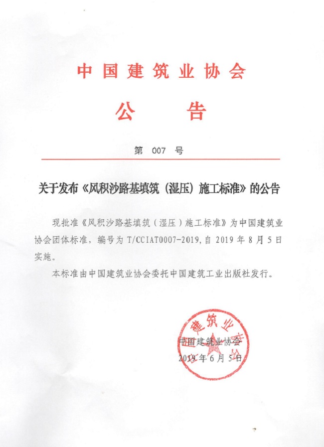 关于发布《风积沙路基填筑(湿压)施工标准》的公告