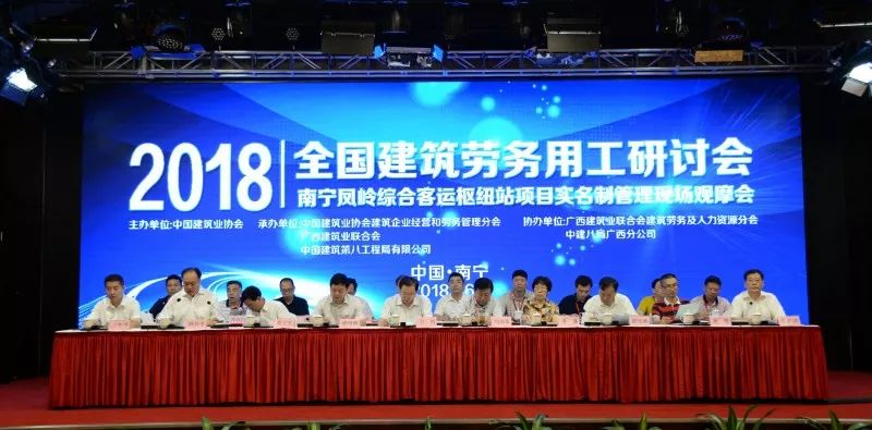 为贯彻落实党中央国务院《新时期产业工人队伍建设改革方案》、《关于促进建筑业持续健康发展的意见》等有关文件精神,加快建筑劳务用工制度改革,推进建筑工人实名制管理,培育现代建筑产业工人队伍,6月28日,中国建筑业协会建筑企业经营和劳务管理分会在广西南宁举办了全国建筑劳务用工研讨暨建筑工人实名制管理现场观摩会。住房城乡建设部建筑市场监管司副司长卫明、中国建筑业协会副秘书长李蓬、中国建筑业协会建筑企业经营和劳务管理分会会长刘锦章、副会长兼秘书长邢作国、广西住房城乡建设厅副厅长杨绿峰、广西建筑业联合会会长黄大友、中建八局副总经理韩兴争等领导以及来自各省市建设主管部门、行业协会、建筑企业和劳务企业等近500人参加了大会。