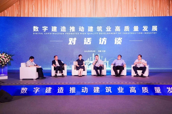 2021年6月24日,中国建筑科学大会暨绿色智慧建筑博览会在国家会展中心(天津)胜利启幕,作为本次大会专题论坛活动之一的“数字建造专题论坛”于当日下午在国家会展中心(天津)如期举行。此次论坛是由中国建筑业协会专家委员会和天津市建筑业协会联合承办。论坛以“数字建造推动建筑业高质量发展”为主题,以主题报告、经验分享、对话访谈和战略合作签约等环节呈现。中国建筑业协会副秘书长赵峰、天津市建筑业协会科技委主任委员胡德均到会致辞。中建协专家委员会常务副主任毛志兵、副主任韩振勇设计大师等多位副主任以及天津市建筑业协会副会长兼秘书长张薇到会指导。来自天津市以及全国各地的会员企业、协会代表约350人参加了此次论坛。论坛由中建协专家委员会秘书长李菲、中建协专家委员会副主任胡德均和李云贵分阶段主持。
